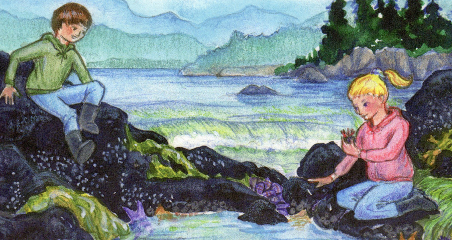 "What happens when a long-time marine educator joins forces with an illustrator to create a story about the drama of the tides, and the care and protection of ocean environments? The adventure-flled series of books is about Sam and Crystal, two wide-eyed siblings. Throughout their adventures, the children learn marine ecology concepts: plankton, lifecycle, tidal cycle, predator-prey, food chain, food web, habitat, adaptation, zonation and ecosystem." - BC Art Teachers Journal Review...Full Review